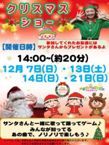 クリスマスショーイベント開催!ハピピランドにサンタさんがやってくる!?