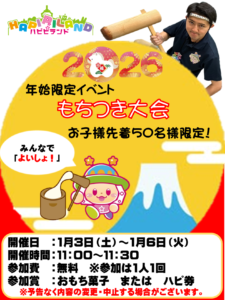 お正月イベントのお知らせです。1月3[土」~1月6日[火]の期間